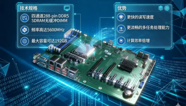 搭救四通谈288-pinDDR5SDRAM无缓冲DIMM,频率高达5600MHz,最大容量可达192GB。这意味着更快的读写速率,更运动的多任务处理才能,让您的揣测驱散倍增!